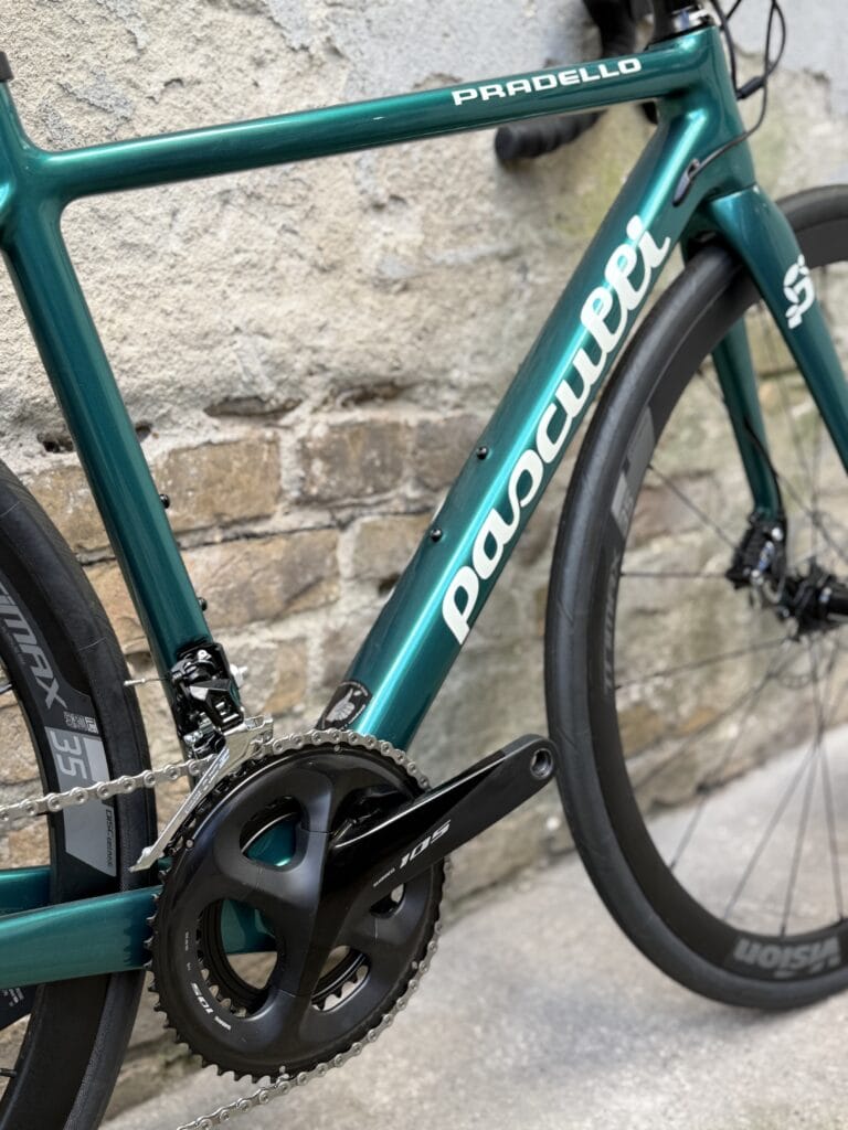 Die Rahmengeometrie und fünf Rahmengrößen von XS bis XL des Pradello sind fest definiert. Der Konfektionsrahmen mit Scheibenbremsen wird nach unseren Angaben für uns in Asien produziert, wobei das Farbdesign und die Ausstattung deines Rades frei wählbar sind. Auch hier setzen wir auf Handarbeit „Made in Europe“ lackiert in Italien und für dich aufgebaut in Berlin. Make it yours!
